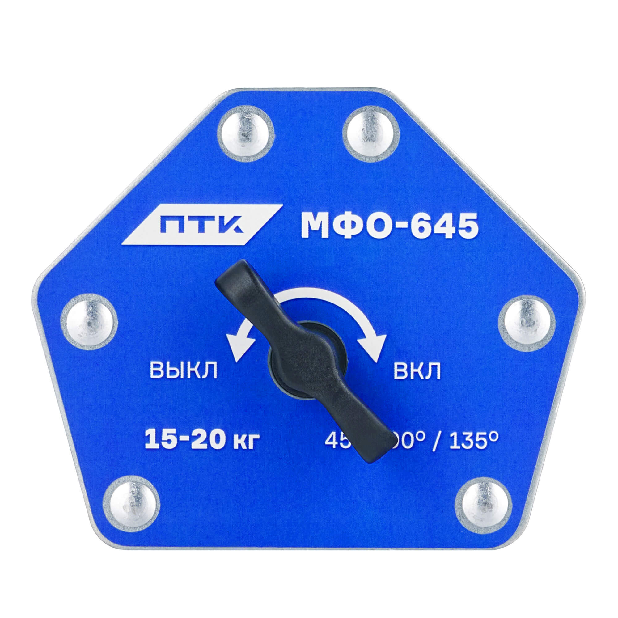 Фиксатор магнитный отключаемый МФО-645 позволяет производить точное выставление углов при сварке, пайке и при монтаже конструкций. В магните присутствует функция отключения. Изготовлен из сплава, который устойчив к высоким температурам.Особенности отключаемого магнитного фиксатора МФО-645:Максимальная масса удерживаемого изделия – от 15 до 20 кг.Возможные углы удерживания деталей – 45°, 90° и 135°Наличие рычага «включения/отключения» магнитного поля. Это позволяет  быстро переставлять фиксатор в нужно место для сварки, не рискуя сдвинуть конструкцию или поцарапать поверхность изделия.При выключении магнита стружка и мелкий намагниченный мусор легко осыпаются с рабочей поверхности. Так проще держат МФО в чистоте, что продлевает ресурс фиксатора и улучшает качество прилегания его к изделию.Поставляется в картонной коробке.